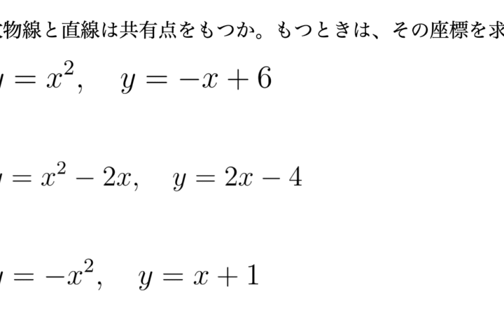- 共有点の座標を求めるには、2つの式を連立して $x$ の2次方程式を作ります。