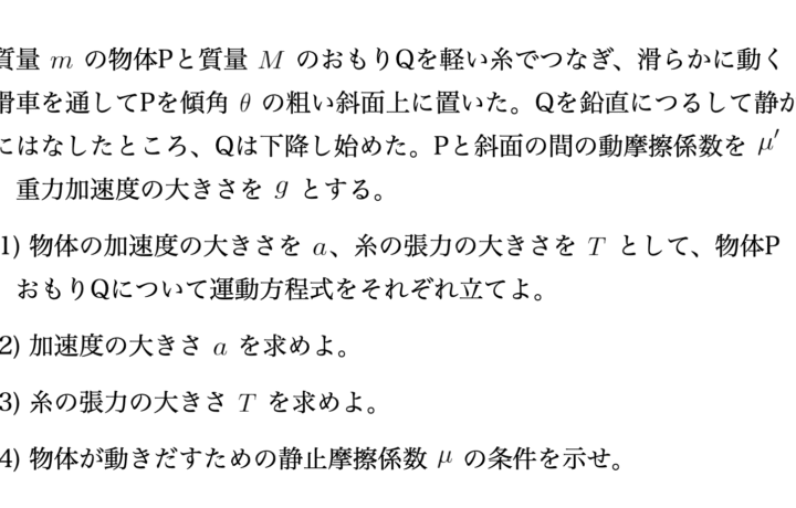 【物理基礎・力学】連結物体の運動方程式の解き方|斜面と滑車の問題で徹底解説
